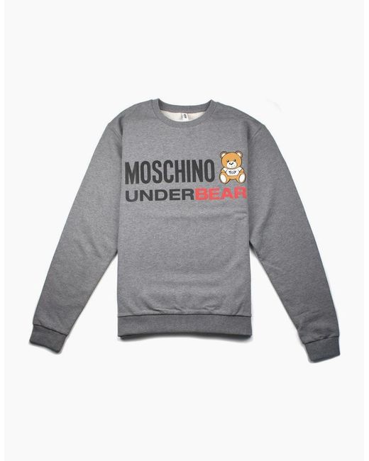 Moschino Underbear Sweatshirt Grey Moschino Underbear Sweatshirt in Grey. Made with standard sizing and boasting long sleeves with a crew neckline, this Moschino casual sweatshirt is adorned by a branded print to the chest. This sportluxe sweatshirt fits true to size. Colour: grey