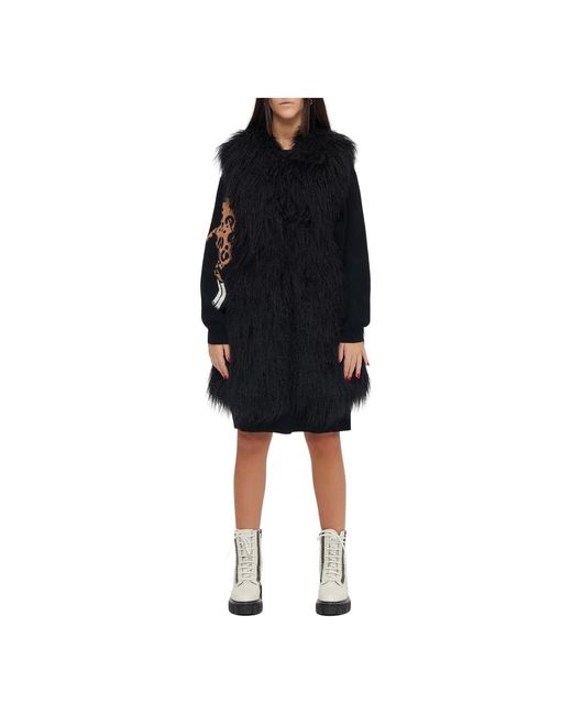 Stay stylish and warm with this must-have Gilet lungo in ecopelliccia from the Boutique Moschino collection. This versatile piece will add a playful touch to any look. Made with a fabric composition of 49% modacrylic and 33% acetate, and a lining composition of 55% polyester and 45% viscose. The ecopelliccia colour is ero, while the lining colour is nero. Featuring a girocollo neckline, sleeveless design, midi length, and closure with hooks. Made in China. Colour: black
