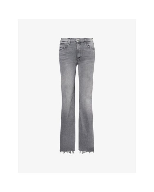 Women's Grey The Doozy Sneak Fray Stretch-Denim Jeans