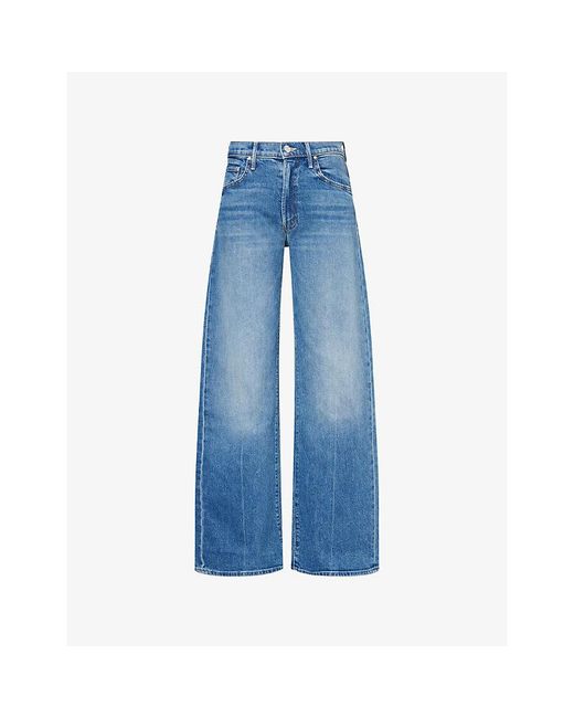 Women's Blue The Mid Rise Lasso Sneak Wide-Leg Denim Jeans