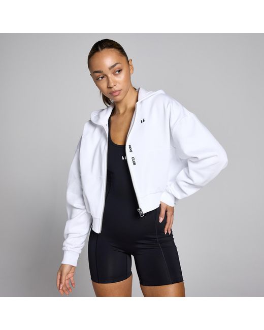 The MP Women's Tempo Zip Through Hoodie combines a soft-touch fabric with a cotton-rich blend, ensuring everyday comfort. The boxy crop fit offers a modern silhouette, while the zip-through closure provides convenience and ease of wear. Experience enhanced mobility with the dropped armhole design, allowing for a greater range of motion during dynamic activities. The ribbed hem and cuffs deliver a secure fit, ensuring you remain focused and free from distractions. Complete with the Move Club graphic, this sweatshirt blends performance with iconic style. Whether you're warming up or winding down, the Tempo Zip Through Hoodie is an essential addition to your wardrobe. Colour: white