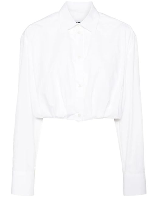 White cotton embroidered logo at the chest pointed flat collar front button fastening long sleeves buttoned cuffs cropped full lining Size: 40. Gender: Female. Material:Cotton/Cotton. Colour: white