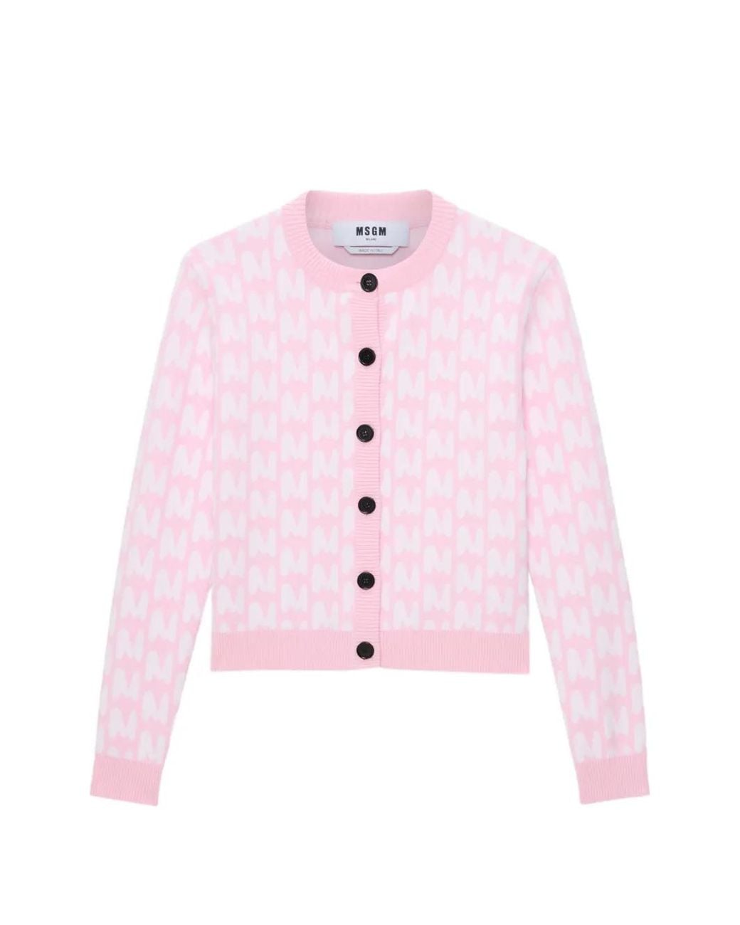 Light pink all-over pattern round neck long sleeves button fastening ribbed trim Size: XXS. Gender: Female. Material:Viscose/Polyester. Colour: pink
