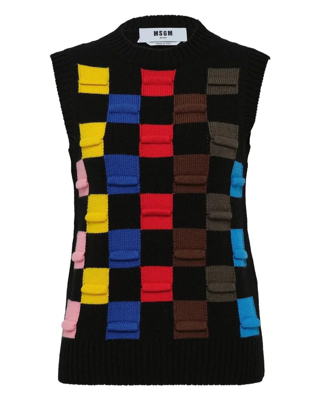 Black checked pattern sleeveless ribbed hem round neck knitted construction Size: XXS. Gender: Female. Material:Fabric. Colour: black