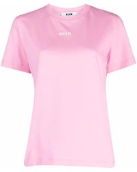 MSGM Women's Blue Checked-Sleeve T-Shirt