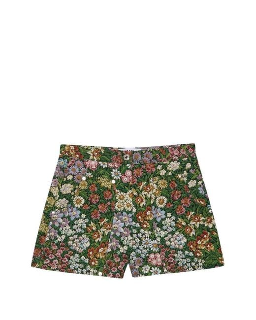 Women's Green Short À Fleurs