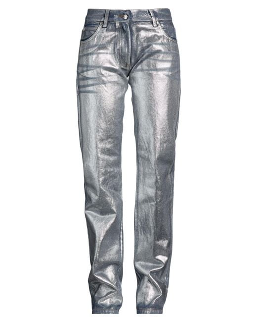 MSGM. straight-leg jeans, denim, metallic, plain colour, brand logo, coloured wash, mid rise, belt loops, regular fit, button fastenings, zip fastening, five pockets, hand wash, do not bleach, do not tumble dry. 100% Cotton.