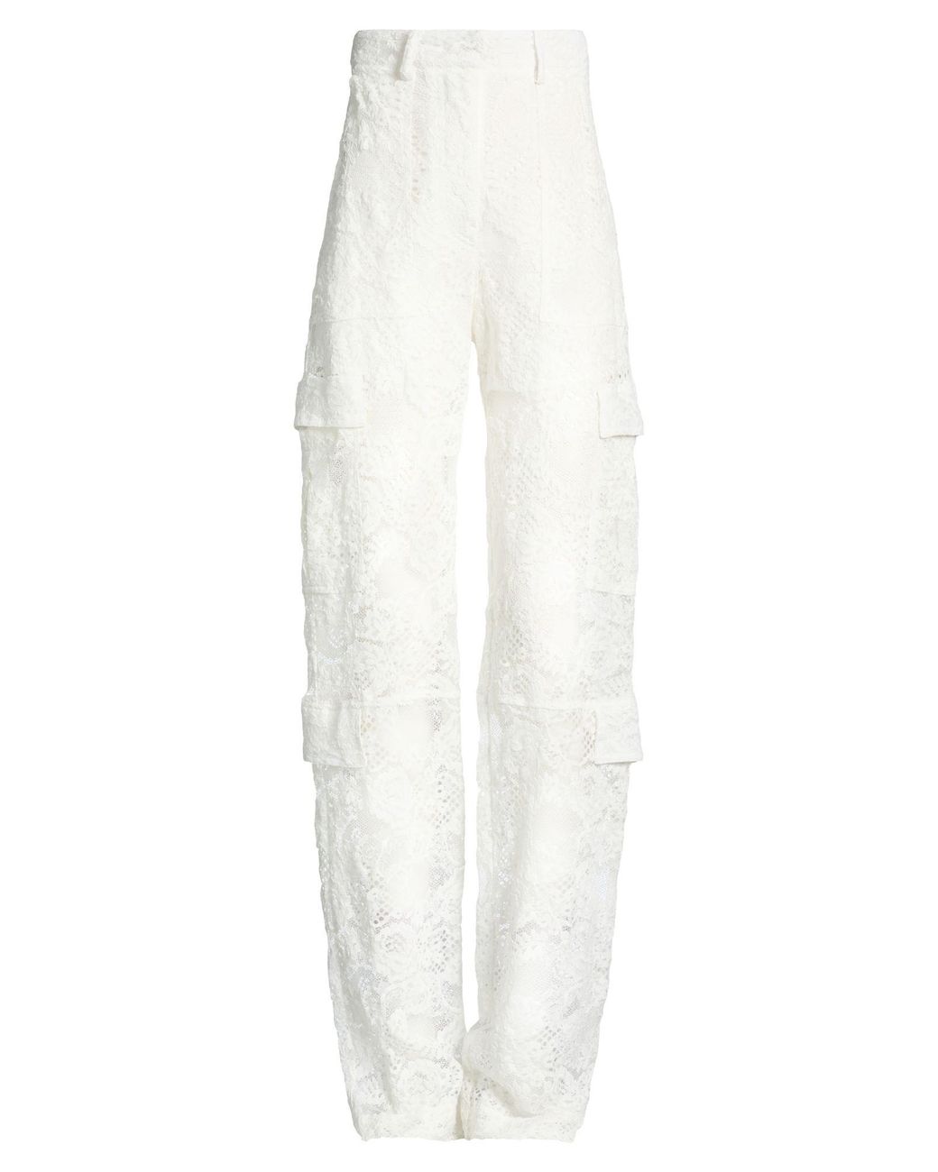 MSGM. cargo trousers, lace, plain colour, no appliqués, high waisted, regular fit, hook fastenings, zip fastening, slit pockets, patch pockets, dry clean, do not bleach, do not tumble dry. 80% Polyamide, 20% Cotton.