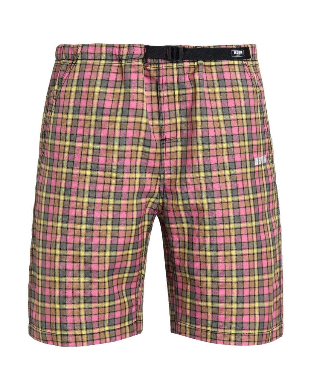 MSGM. casual shorts, woven, checked, brand logo, high waisted, drawstring fastening, slit pockets, patch pocket, dry clean, do not bleach, do not tumble dry, this brand runs large. 100% Polyester.