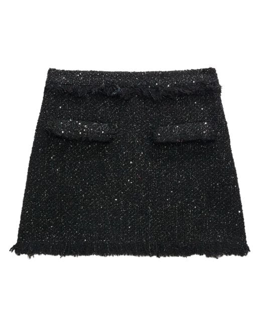 Black bouclé construction frayed edge metallic sheen high waist two front flap pockets thigh-length Size: 38. Gender: Female. Material:Polyester/Cotton/Acrylic (Fiber)/Wool/Polyamide.