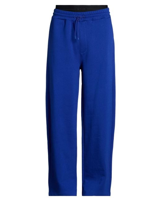 MSGM. track trousers, french terry, plain colour, brand logo, high waisted, drawstring waist, relaxed fit, slit pockets, patch pockets, machine wash, do not bleach, do not tumble dry, this brand runs large. 100% Cotton. Colour: blue