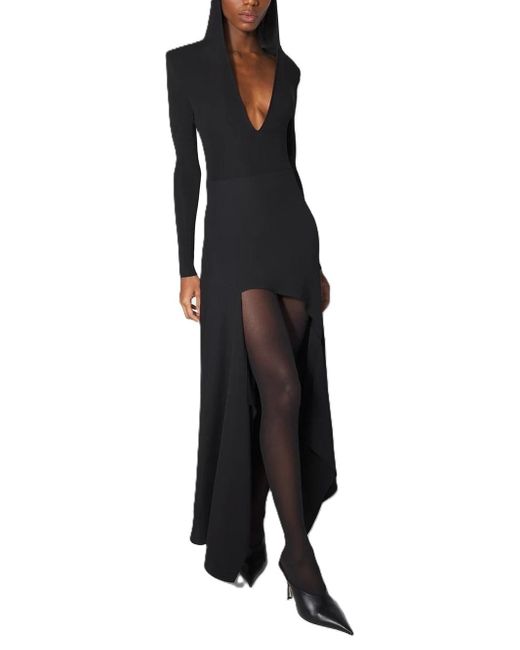 Fitted bodysuit in velvet jersey hooded straight padded shoulders tanga cut snap button fastening at the bottom 97% viscosa 3% elastane fr size. Colour: black