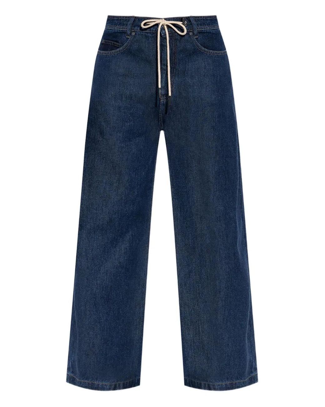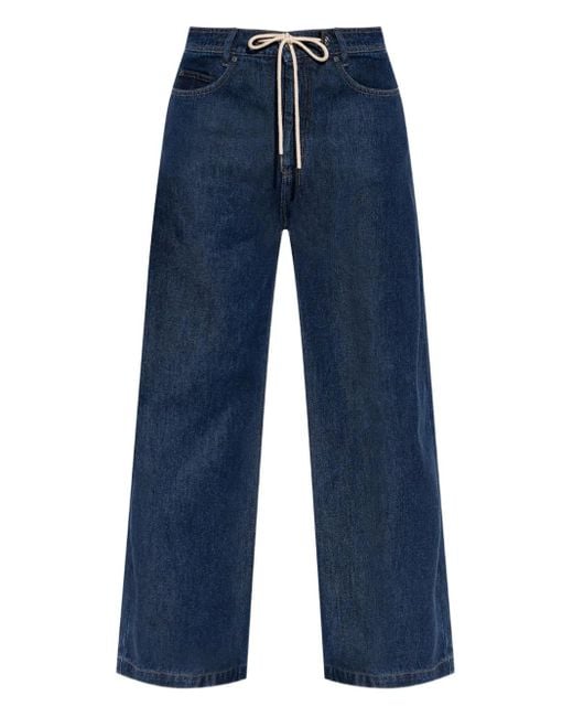 Drawstring-Waistband Wide-Leg Jeans - Blue