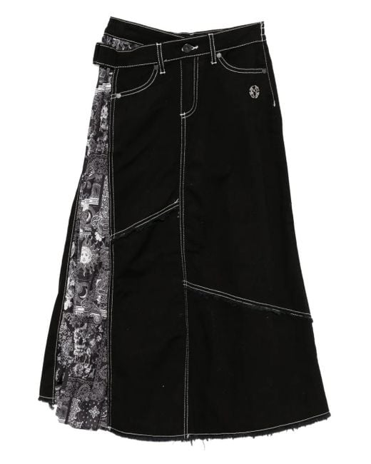 Patchwork-Effect Frayed Denim Skirt - Blue