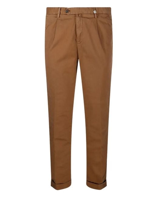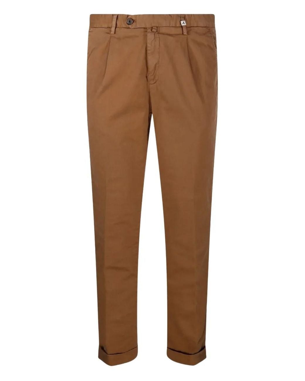 Men's Brown Pleated Cuffed Straight Trousers