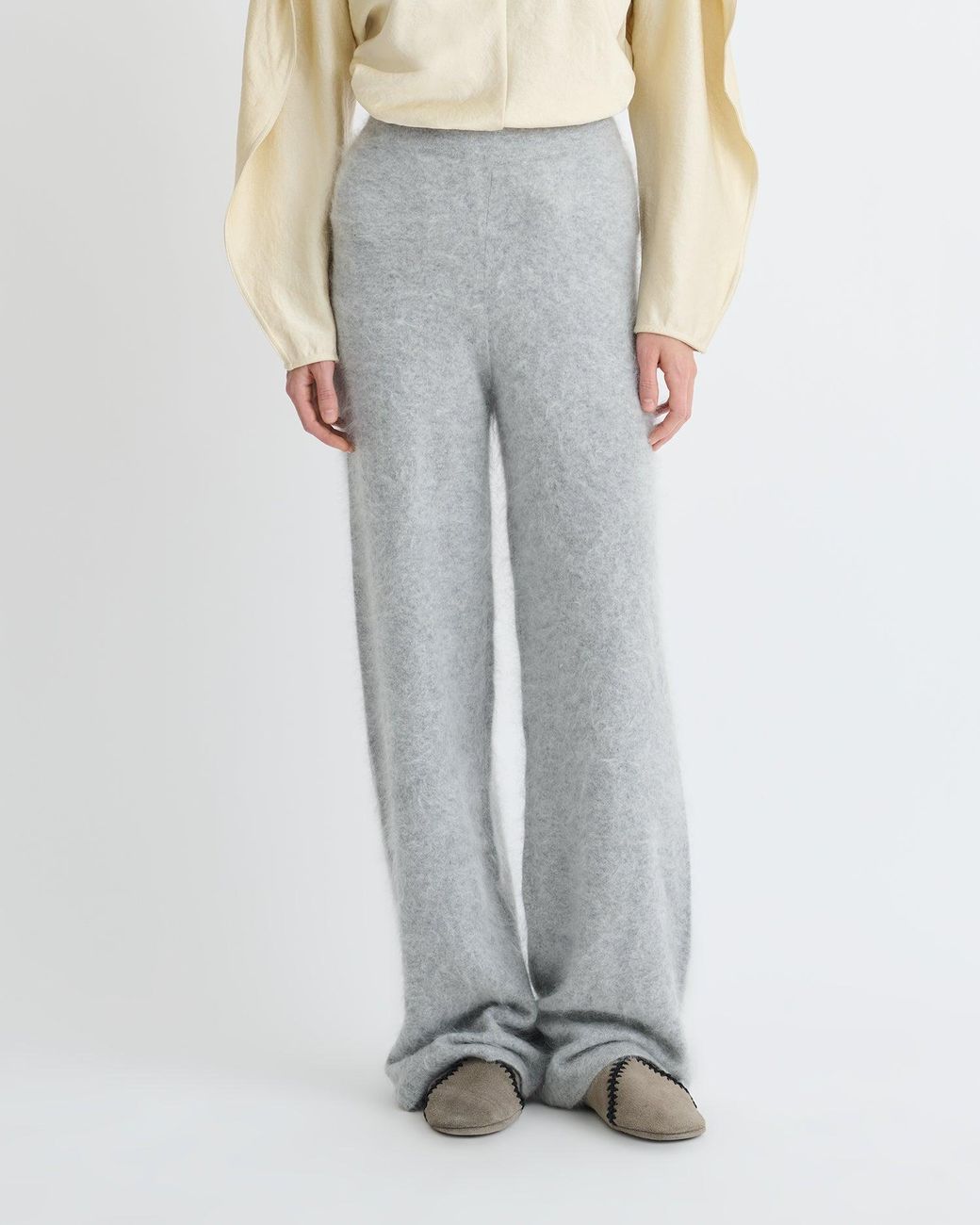 The Ewerly Trousers by Nanushka reimagine loungewear through a luxury lens. Crafted from grey brushed cashmere, their loose and supple silhouette bring ease to everyday dressing. Fit Standard fit, matches usual sizing Size: XXS, XS, S, M, L, XL Colour: grey