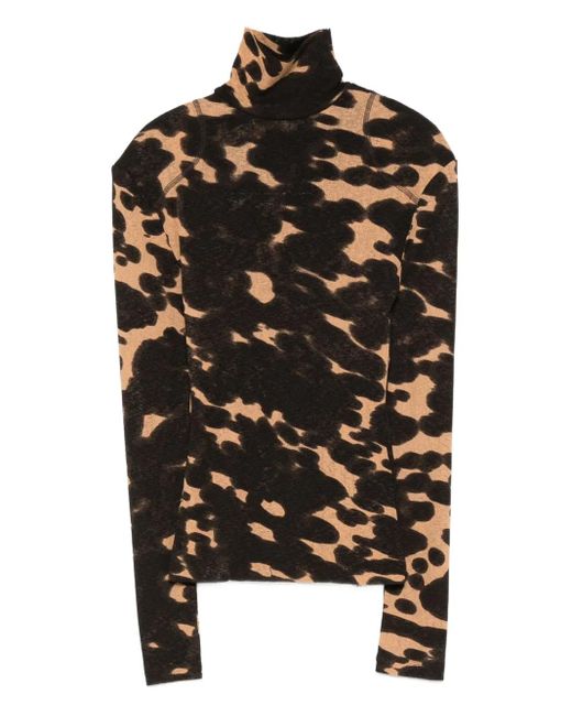 Lou Printed Jersey Turtleneck Top - Black