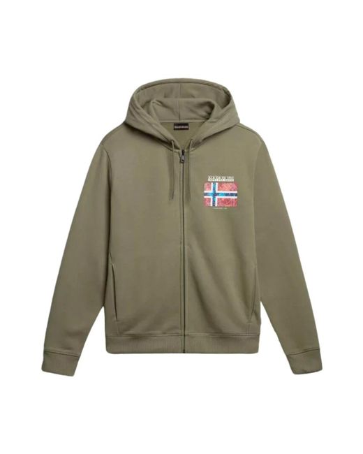 Capo essenziale per l’inverno, la felpa con cappuccio e zip a tutta lunghezza Guiro presenta il logo del brand e una bandiera norvegese sul petto che richiamano il DNA di Napapijri. Completa di cappuccio regolabile, coulisse e occhielli ricamati, è realizzata in morbido cotone per offrire il massimo del comfort. Colour: green