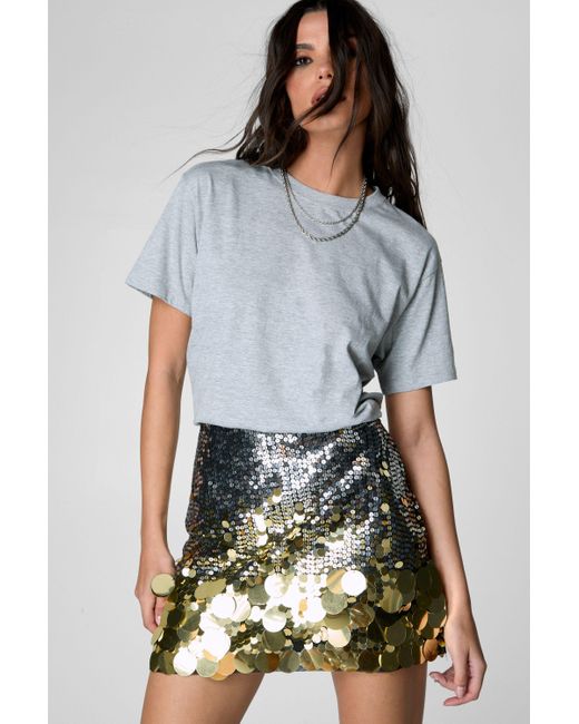 Eye-catching ombre sequin design Mini length for a flirty silhouette Disc sequins create a mesmerising texture Fitted waistband for a flattering fit Versatile piece for various night-out looks Make a dazzling entrance with this show-stopping Disc Sequin Ombre Mini Skirt from NastyGal. Perfect for those nights when you want to shine, this skirt features an alluring ombre effect that transitions from shimmering metallic hues to larger disc sequins. The mini length showcases your legs, while the fitted waistband ensures a sleek silhouette. Style it with a relaxed t-shirt and statement boots for an effortlessly cool contrast, or pair it with a cropped top and strappy heels for a head-turning club ensemble. Whether you're hitting the dance floor or enjoying drinks with friends, this skirt is sure to turn heads and keep you sparkling all night long. Colour: blue