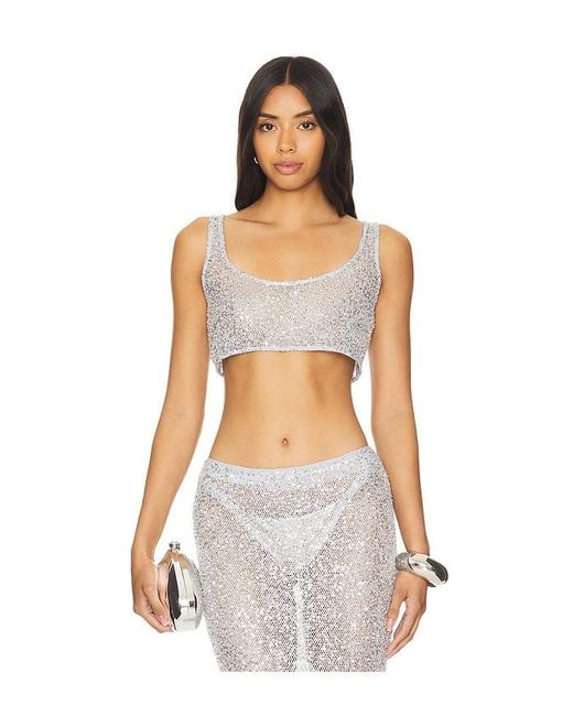 NBD Shanti Top in Metallic Silver. Size L. Also in M, XL. NBD Shanti Top in Metallic Silver. Size M, XL. 100% polyester. Made in China. Dry clean only. Sequin embellished knit fabric. Item not sold as a set. NBDR-WS970. NBS1019 U24. For the girl who's the life of the party. For the girl who's always up for a glass of champagne. For the girl who likes to keep her closet as filled with as her social calendar, there's NBD. The young-at-heart line features dresses that every it girl covets and pieces that are sexy, flirty, fun and now.