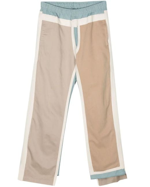 Men's Natural Patchwork Design Straight-Leg Trousers