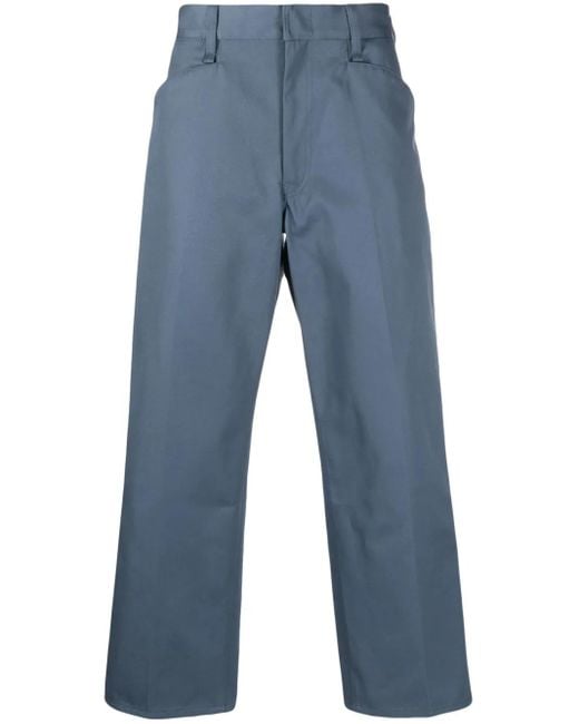 Men's Blue Logo-Patch Wide-Leg Trousers