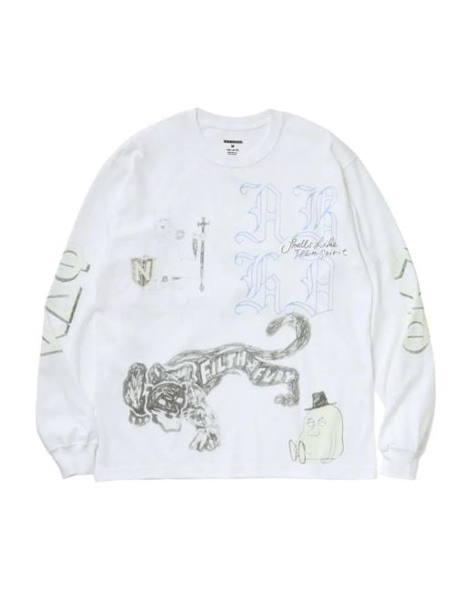 Men's White Graphic-Print Long-Sleeve T-Shirt