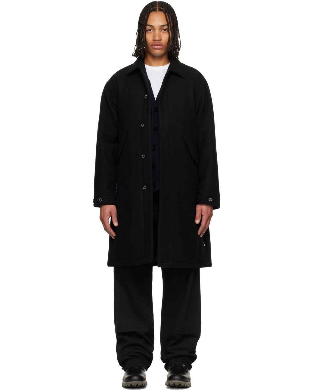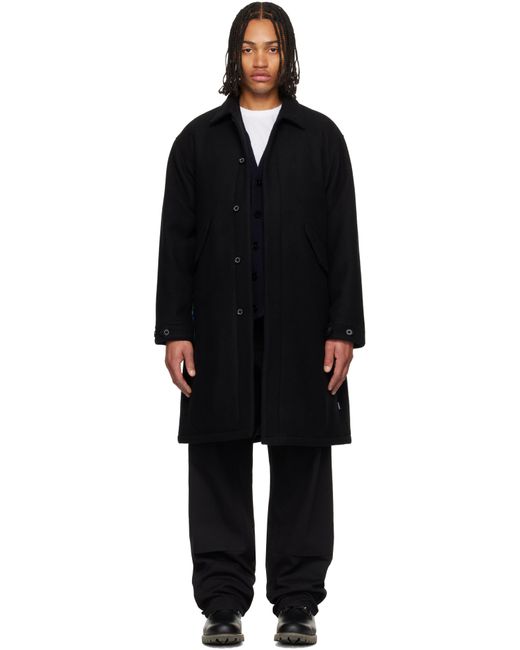 Wool-blend melton coat. · Spread collar · Button closure · Flap pockets at waist · Logo flag at side-seam · Terry cloth appliqué at sleeves · Adjustable buttoned cuffs · Printed text at back · Buttoned vent at back hem · Welt pockets at interior · Quilted satin lining · Logo-printed black hardware Supplier color: Black Colour: black