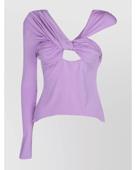 Women's Purple Asymmetric Long Sleeve Draped Top