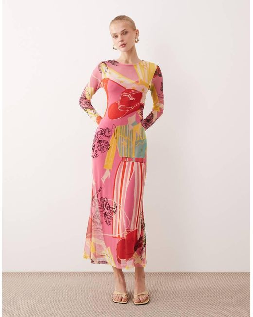 Women's Pink Mesh Maxi Dress