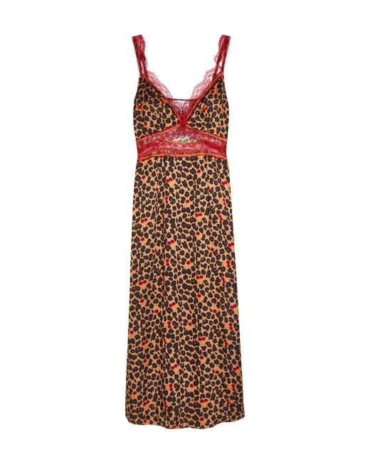 Women's Brown Mimi Cherry And-Print Satin Midi Dress