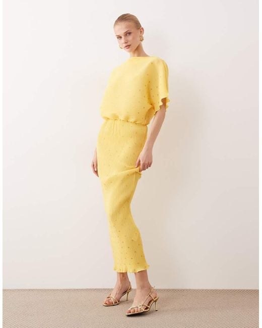 Women's Yellow Tilly Off Shoulder Plisse Midaxi Dress