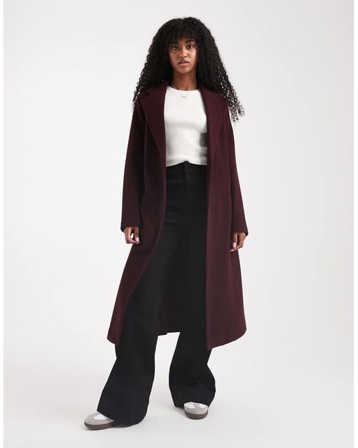 Asos Design Petite Funnel Neck Longline Formal Trench Coat - Red