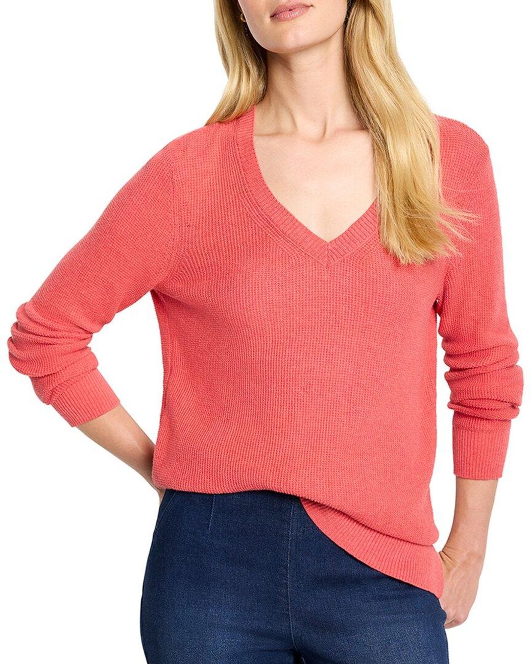 - Waffle Stitch V-Neck Sweater