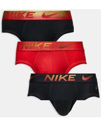 Briefs multipack by Nike One in each colour, please Pack of three pairs Plain designs Nike branded waist Form-fitting design. Colour: red