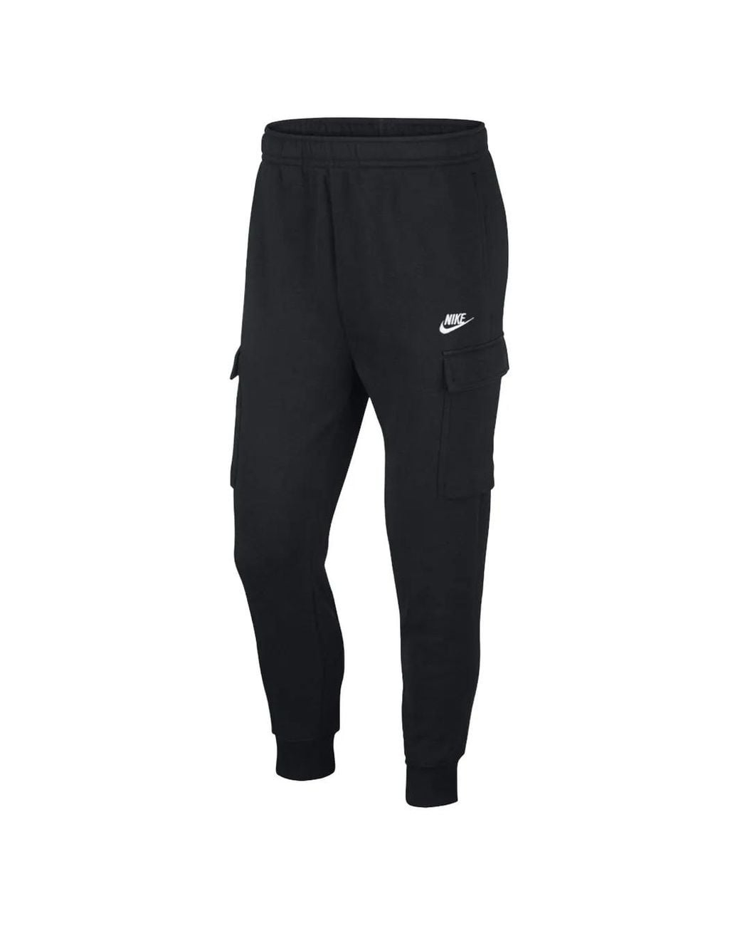 Black jersey texture elasticated waistband logo printed on the front two side slit and side cargo pockets ribbed cuffs Size: S. Gender: Male. Material:Cotton/Polyester. Colour: black
