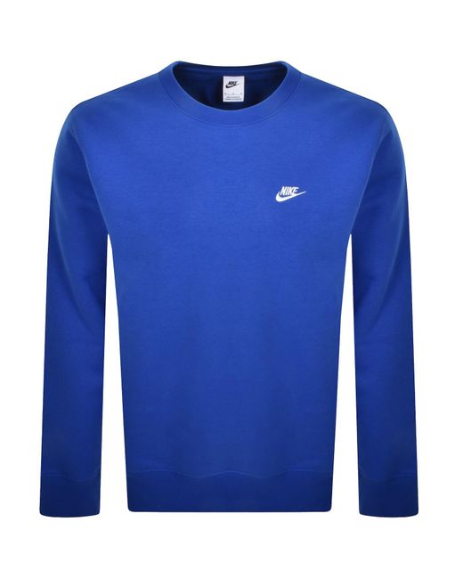 Nike Crew Neck Club Sweatshirt In Game Royal. Ribbed designs to the crew neck cuffs on the long sleeves and waistband. The signature Nike Swoosh logo is embroidered on the left of the chest in white. A soft fleece interior and top stitching in blue. 80% Cotton And 20% Polyester. Colour: blue