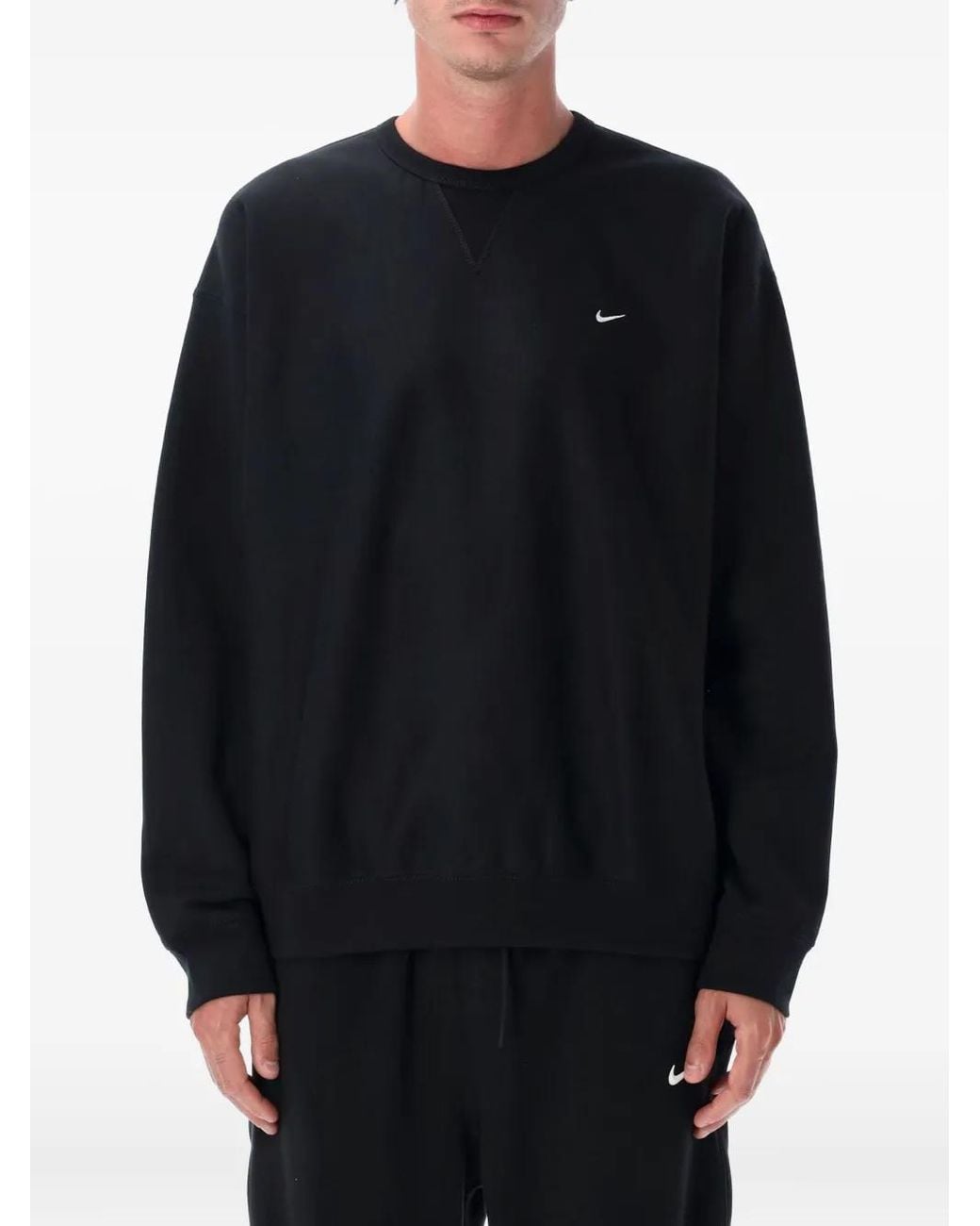 Swoosh Long Sleeve Crew Neck Jumpers Cu4035 010 Cotton - Black