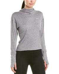 The nike element women's full-zip running hoodie delivers versatile, sweat-wicking comfort and coverage. Its extended collar adds warmth around your neck, while thumb holes help keep the sleeves in place as you run.
