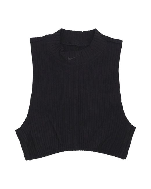Elevate your style with this Nike Ribbed Sleeveless High Neck Top. Designed for a slim fit, it features an elasticated bottom and cropped cut for a trendy look. Key attributes: Black | Black | Viscose | Acrylic | Cotton | Elastane | Elasticated bottom | High neck | Sleeveless | Cropped cut | Embroidered Swoosh logo | Dimensions & fit: Slim fit | Composition & care: Viscose | Acrylic | Cotton | Elastane | Hand or machine wash according to label instructions. Colour: black