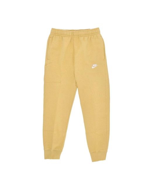 Elevate your casual attire with the Club Jogger Joggers in Wheat Gold by Nike, designed for ultimate comfort and style. Key attributes: Wheat Gold | White | Yellow | Fleece | Elastic and drawstring waist | Side pockets | Back pocket with poussoir | Cuffed bottoms | Embroidered Nike logo | Dimensions & fit: Regular fit | Composition & care: 80% cotton | 20% polyester | Hand or machine wash Colour: yellow