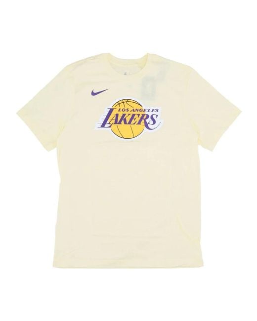 Show your support for the Los Angeles Lakers with this Nike Short Sleeve Crew Neck T-shirt. Regular fit, made of 100% Cotton, featuring the Lakers logo on the front and the iconic Swoosh logo on the right side. Perfect for male fans. Hand or machine washable. Official NBA merchandise. Colour: natural