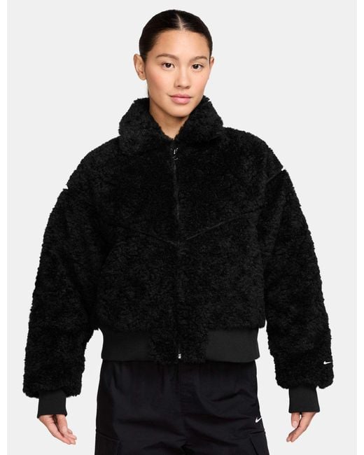 Black Women's Sportswear Essential Fur Bomber Jacket