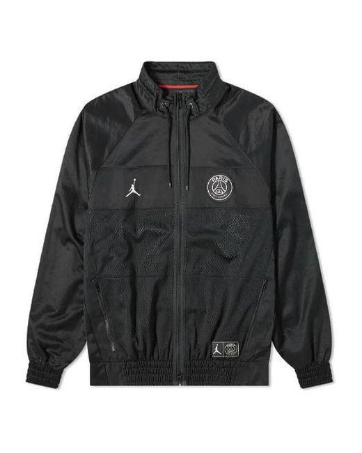Men's Black X Psg Crossover Alphabet Printing Long Sleeves Zipper Jacket