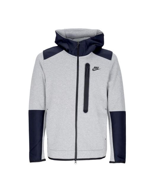 The Tech Fleece Hooded Zip Sweatshirt offers a stylish and warm option for everyday wear, featuring a double-sided Tech Fleece interior for exceptional comfort. Key attributes: Dk Grey Heather | Black | Black | Cotton | Polyester | Nylon | Zip closure | Side pockets | Zip pocket on front | High collar | Woven cuffs | Rubberized logo | Dimensions & fit: Regular fit | Composition & care: 69% cotton | 31% polyester | 100% nylon inserts | Hand or machine washable Colour: blue
