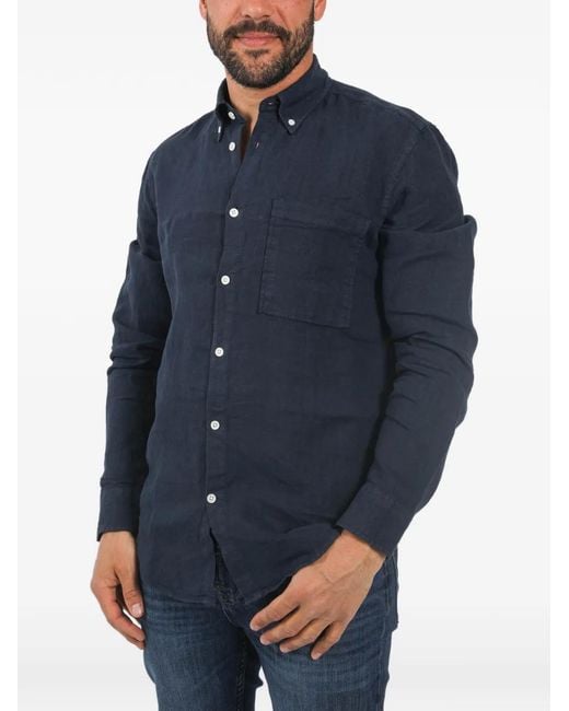 Men's Blue Pocket Linen Shirt