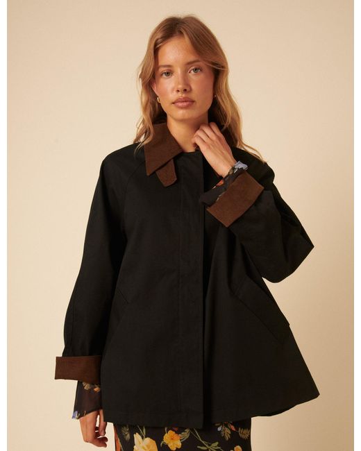 Funnel tab collar Silver-toned popper buttons Long sleeves Side pockets Back storm vent Lightly lined Concealed zip fastening Size tip: we recommend sizing down