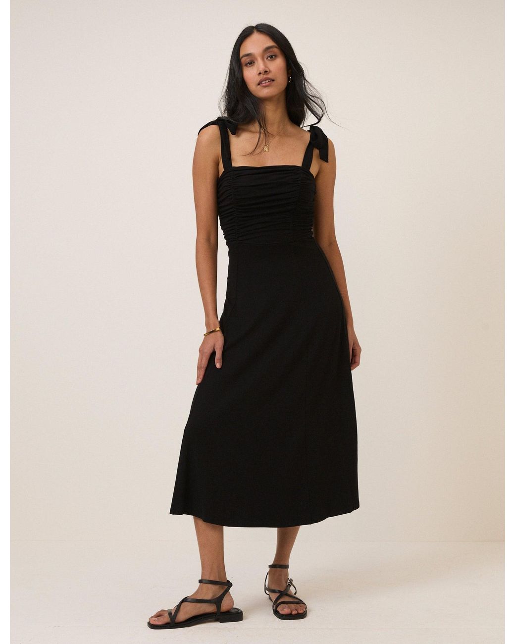 Women's Black Tie Shoulder Hattie Jersey Midi Dress