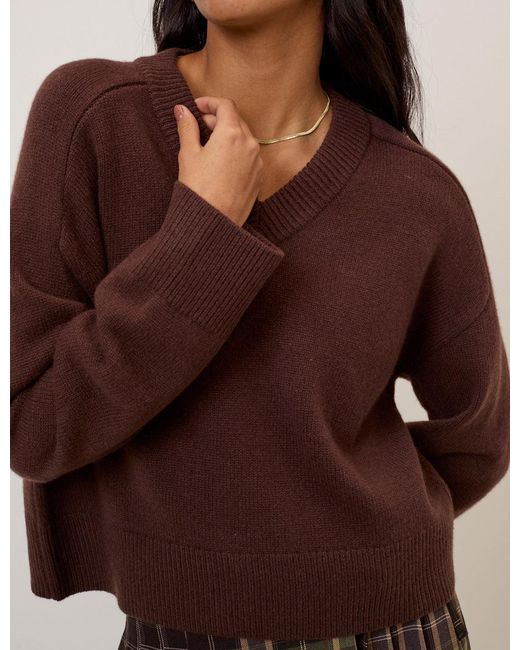 V-neck Long sleeves Ribbed trims Relaxed fit Size tip: we recommend your usual size We recommend folding your knits to avoid any unwanted stretching Colour: brown