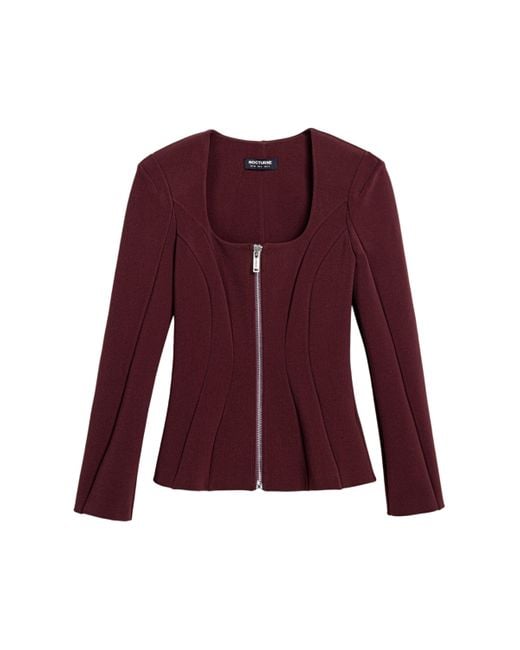 Sleek and sculpted, this tailored top is designed in a slim fit with a square neckline and long sleeves for a refined silhouette. The front zip closure and panelled seam detailing enhance its structured shape, while the fitted waist flows into a subtle peplum hem for a feminine finish. Crafted from smooth woven fabric, it’s a versatile piece that transitions effortlessly from day to evening. Washing & Care Instructions: Do Not Wash; Do Not Bleach; Do Not Tumble Dry; Iron Low; Dry Clean undefined 3%, undefined 20%, undefined 77% Colour: purple